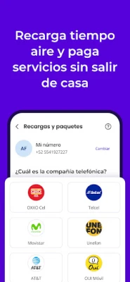 - Paga tus servicios de luz, agua, internet, telefonía y más, directamente desde tu app.